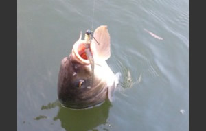 無理やり引っ張るとバラすことが多いので、コイの向きを見ながら、糸や針に無理な力がかからないように泳がしたり、手前に寄せたりと持久戦になります。しかし、ワームを投げていたりすると食いついてきたりします。